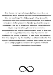 Θεωρώ ότι κάτι τόσο σημαντικό δεν χρειάζεται να ειπωθεί με πολλές λέξεις για να χαραχθεί στη νόηση του αναγνώστη.